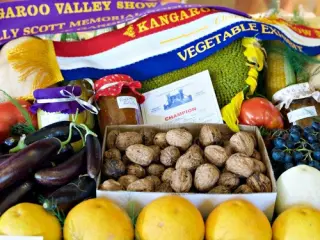 On display in the Pavilion. Exhibits include Best Collection of Vegetables; Salad Vegetables; Garden Produce. There are prizes for the Best in a wide range of vegetables, fruit, eggs, honey and olives.